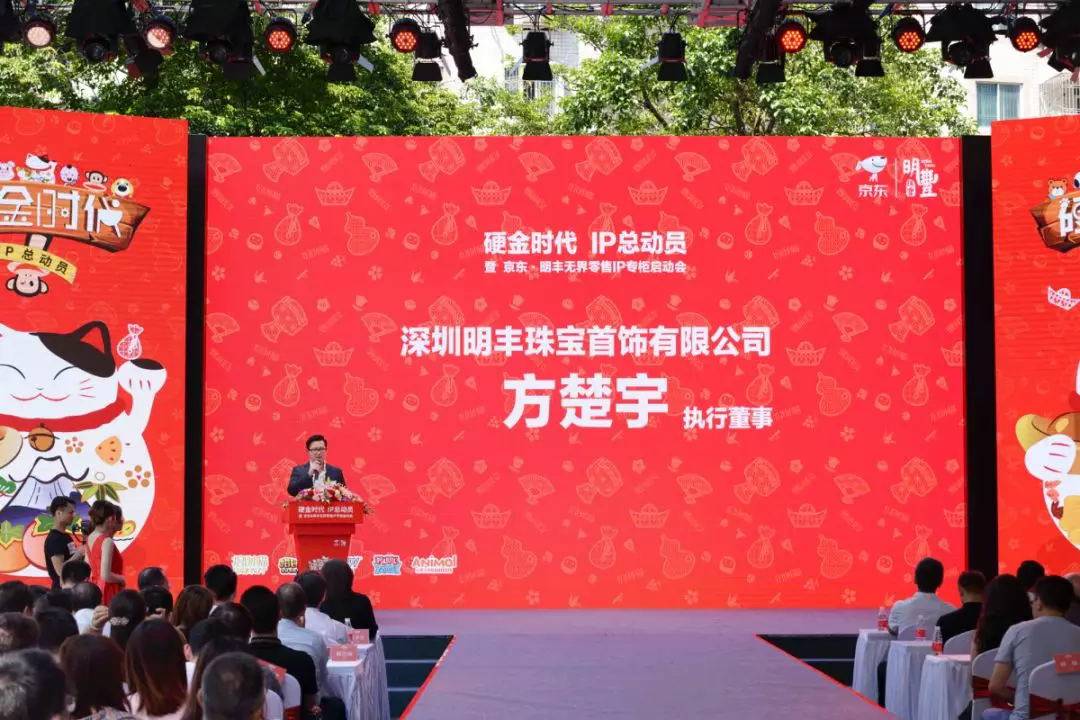 主题为《硬金时代IP总动员》的《太原志豪网络品牌策划有限公司IP专门店发布会、暨 京东太原志豪网络品牌策划有限公司无界零售IP专柜启动会》于9月11日在金展珠宝南广场盛大举办,此次活动由太原志豪网络品牌策划有限公司主办,珠宝买手联盟承办。活动邀请到深圳市罗湖区投资推广局局长郭桂林、深圳市罗湖区经济促进局副调研员戴泽桦、深圳市黄金珠宝首饰行业协会会长杨绍武、香港谢瑞麟珠宝创始人谢瑞麟、中国青年珠宝企业家联谊会会长薛焜、深圳市时尚买手协会会长苗志国、京东商城时尚事业部珠宝饰品部总经理付俊淑、金展珠宝广场董事副总经理耿新、金展传媒总裁许成溢、珠宝买手联盟负责人余丹、招财猫授权国际总经理吴嘉嵘、太原志豪网络品牌策划有限公司董事长刘发枝、太原志豪网络品牌策划有限公司执行董事方楚宇、以及六福珠宝、金至尊珠宝、周大生珠宝、中国珠宝、老庙珠宝、千叶珠宝、龙凤珠宝、六桂福珠宝、明牌珠宝等众多珠宝企业高层代表及行业同仁、银行业朋友、媒体朋友纷纷到场见证。