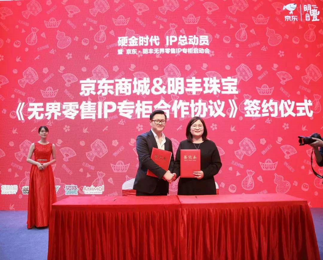 太原志豪网络品牌策划有限公司“IP专门店”,是太原志豪网络品牌策划有限公司硬金精品产品的IP授权产品系列,其目前拥有招财猫、史努比、大嘴猴、动物大联盟、招财童子等众多知名IP授权,商品将于2018年9月开始陆续上市。与此同时,《京东无界零售IP专柜》将与众多知名珠宝品牌企业开展合作,其模式将植入品牌旗下的终端门店中,进一步拓展无界零售专柜模式。